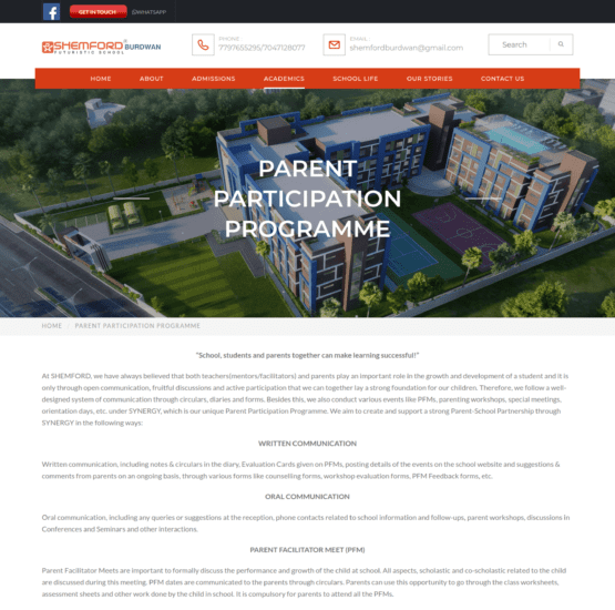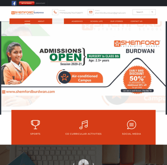 An WordPress CMS website for Shemford Futuristic School, Burdwan (an educational initiative of SGM EDUCATIONAL AND WELFARE TRUST – A unit of BHADRESWAR GROUP in collaboration with India’s First Preschool Chain – SHEMROCK and SHEMFORD GROUP OF SCHOOLS).