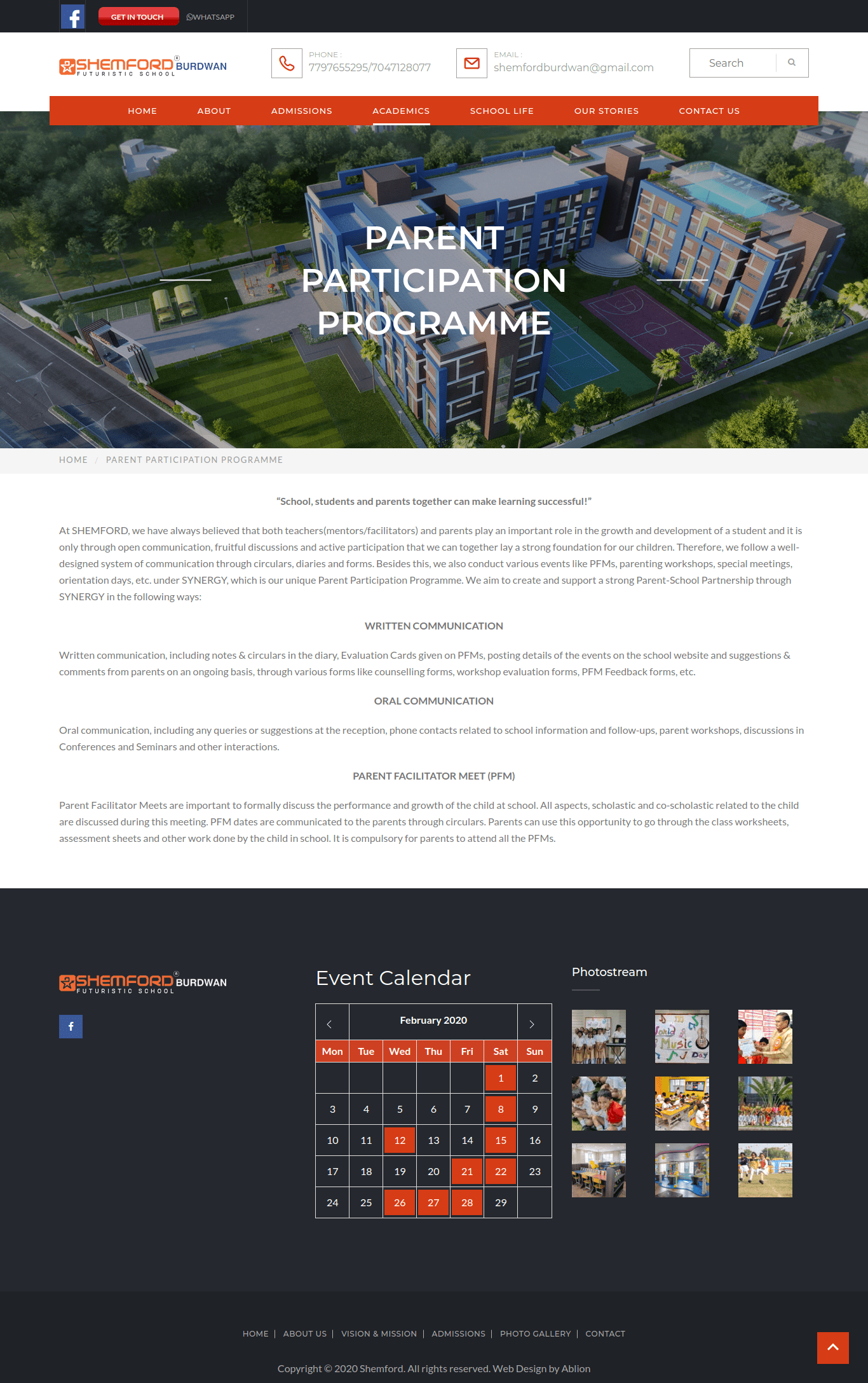 The website contains all the information related to the school with many images and videos. Contact forms for parents of students and job seekers are also integrated in the website. An event calendar is also available for information regarding events.